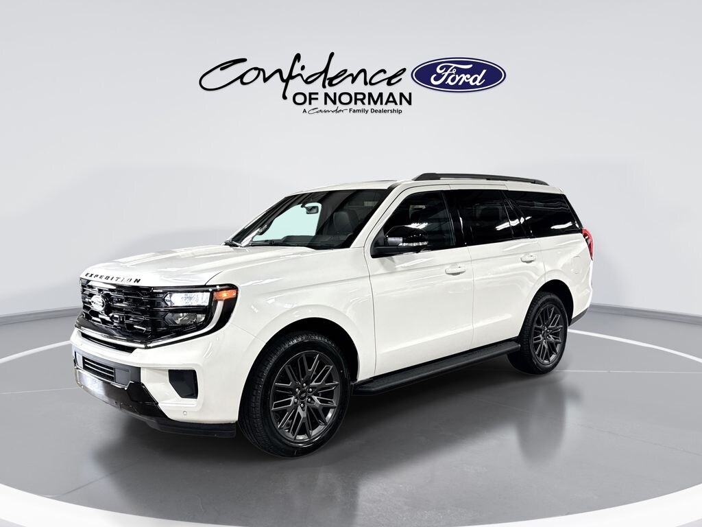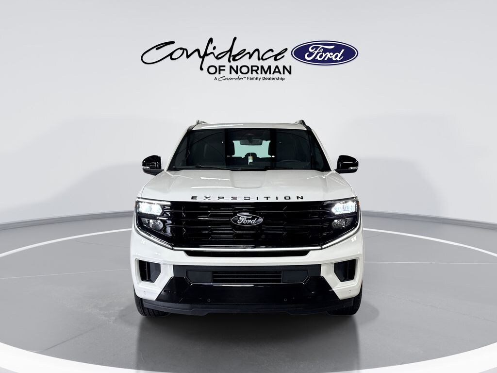 Features: Equipment Group 600A Standard Package (2nd Row Power-Folding Captain's Chairs, 3.73 Axle Ratio, BlueCruise Equipped (90-Day Trial), Ford Digital Experience, Heated and Ventilated Leather Front Captain's Chairs, Power Tilt/Telescopic Steering Wheel with Memory, Radio: B&O Sound System by Bang and Olufsen, SiriusXM with 360L, and Wheels: 20" x 8.5" Ebony Bright Machined Aluminum), Ford Connectivity Package (1-Year Included), Stealth Appearance Package (Black Belt Molding, Black Expedition Lettering on Hood, Black Headlamp Bezel with Ebony Trim Applique, Black Platinum Badge on Tailgate, Black Roof Rails, Carbon Black Front Bumper/Fascia, Rear Side Windows Laminated Glass, and Signature Grille Lighting), 4WD, 10 Speakers, 3rd row seats: split-bench, 4-Wheel Disc Brakes, ABS brakes, Air Conditioning, Alloy wheels, AM/FM radio: SiriusXM with 360L, Apple CarPlay/Android Auto, Auto High-beam Headlights, Auto-dimming door mirrors, Auto-dimming Rear-View mirror, Automatic temperature control, Brake assist, Bumpers: body-color, Compass, Delay-off headlights, Driver door bin, Driver vanity mirror, Dual front impact airbags, Dual front side impact airbags, Electronic Stability Control, Emergency communication system: 911 Assist, Exterior Parking Camera Rear, Four wheel independent suspension, Front anti-roll bar, Front Bucket Seats, Front Center Armrest, Front dual zone A/C, Front License Plate Bracket, Front reading lights, Fully automatic headlights, Garage door transmitter, Genuine wood dashboard insert, Genuine wood door panel insert, Heated door mirrors, Heated front seats, Heated rear seats, Heated steering wheel, Illuminated entry, Intersection Assist, Leather steering wheel, Low tire pressure warning, Memory seat, Navigation System, Occupant sensing airbag, Outside temperature display, Overhead airbag, Overhead console, Panic alarm, Passenger door bin, Passenger vanity mirror, Power door mirrors, Power driver seat, Power moonroof: Vista Roof, Power passenger seat, Power steering, Power windows, Radio data system, Rain sensing wipers, Rear air conditioning, Rear anti-roll bar, Rear reading lights, Rear window defroster, Rear window wiper, Reclining 3rd row seat, Remote keyless entry, Security system, Speed control, Speed-sensing steering, Speed-Sensitive Wipers, Split folding rear seat, Spoiler, Steering wheel memory, Steering wheel mounted audio controls, Tachometer, Telescoping steering wheel, Tilt steering wheel, Traction control, Trip computer, Turn signal indicator mirrors, Variably intermittent wipers, Ventilated front seats, and Voltmeter.