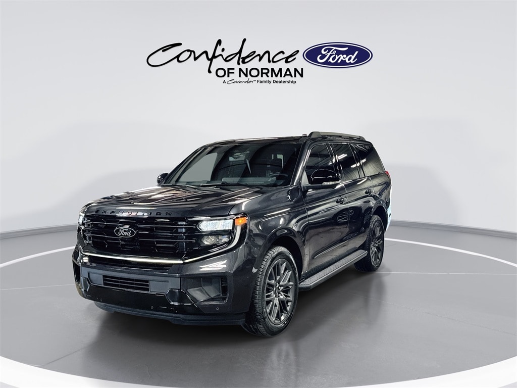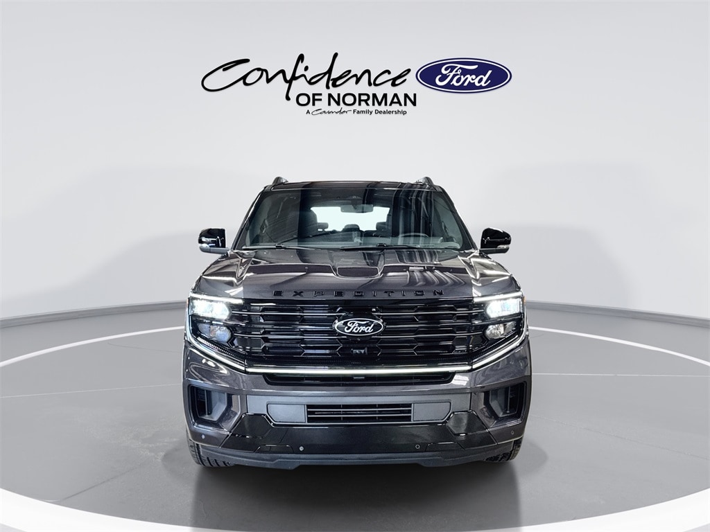 Features: Equipment Group 600A Standard Package (2nd Row Power-Folding Captain's Chairs, 3.73 Axle Ratio, BlueCruise Equipped (90-Day Trial), Ford Digital Experience, Heated and Ventilated Leather Front Captain's Chairs, Power Tilt/Telescopic Steering Wheel with Memory, Radio: B&O Sound System by Bang and Olufsen, SiriusXM with 360L, and Wheels: 20" x 8.5" Ebony Bright Machined Aluminum), Ford Connectivity Package (1-Year Included), Stealth Appearance Package (Black Belt Molding, Black Expedition Lettering on Hood, Black Headlamp Bezel with Ebony Trim Applique, Black Platinum Badge on Tailgate, Black Roof Rails, Carbon Black Front Bumper/Fascia, Rear Side Windows Laminated Glass, and Signature Grille Lighting), 4WD, 10 Speakers, 3rd row seats: split-bench, 4-Wheel Disc Brakes, ABS brakes, Air Conditioning, Alloy wheels, AM/FM radio: SiriusXM with 360L, Apple CarPlay/Android Auto, Auto High-beam Headlights, Auto-dimming door mirrors, Auto-dimming Rear-View mirror, Automatic temperature control, Brake assist, Bumpers: body-color, Compass, Delay-off headlights, Driver door bin, Driver vanity mirror, Dual front impact airbags, Dual front side impact airbags, Electronic Stability Control, Emergency communication system: 911 Assist, Exterior Parking Camera Rear, Four wheel independent suspension, Front anti-roll bar, Front Bucket Seats, Front Center Armrest, Front dual zone A/C, Front License Plate Bracket, Front reading lights, Fully automatic headlights, Garage door transmitter, Genuine wood dashboard insert, Genuine wood door panel insert, Heated door mirrors, Heated front seats, Heated rear seats, Heated steering wheel, Illuminated entry, Intersection Assist, Leather steering wheel, Low tire pressure warning, Memory seat, Navigation System, Occupant sensing airbag, Outside temperature display, Overhead airbag, Overhead console, Panic alarm, Passenger door bin, Passenger vanity mirror, Power door mirrors, Power driver seat, Power moonroof: Vista Roof, Power passenger seat, Power steering, Power windows, Radio data system, Rain sensing wipers, Rear air conditioning, Rear anti-roll bar, Rear reading lights, Rear window defroster, Rear window wiper, Reclining 3rd row seat, Remote keyless entry, Security system, Speed control, Speed-sensing steering, Speed-Sensitive Wipers, Split folding rear seat, Spoiler, Steering wheel memory, Steering wheel mounted audio controls, Tachometer, Telescoping steering wheel, Tilt steering wheel, Traction control, Trip computer, Turn signal indicator mirrors, Variably intermittent wipers, Ventilated front seats, and Voltmeter.