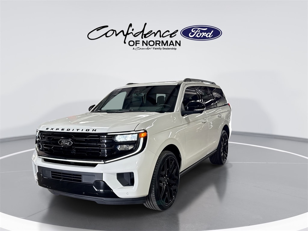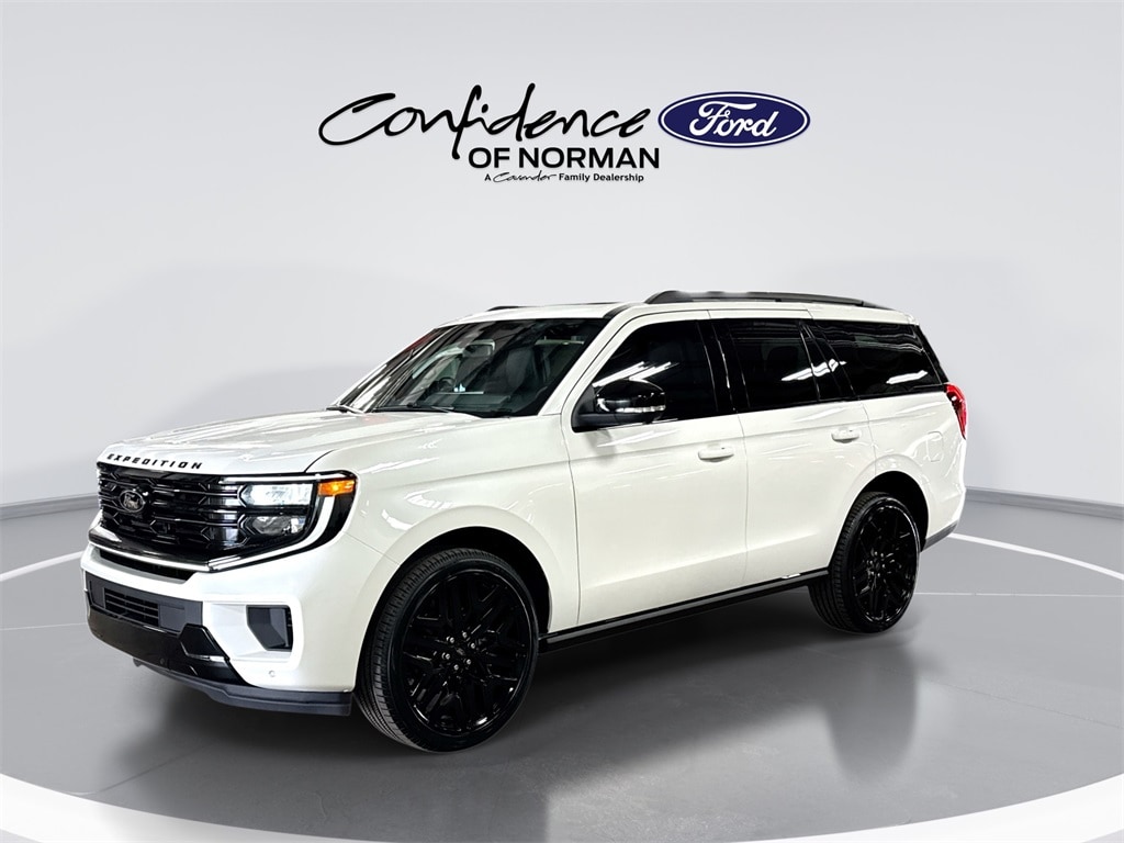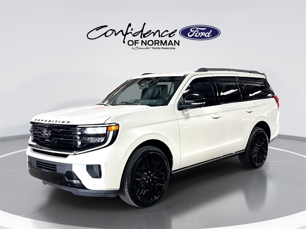 Features: Driver's Package (Radio: B&O Play Unleashed and SiriusXM with 360L), Equipment Group 600A Standard Package (2nd Row Power-Folding Captain's Chairs, 3.73 Axle Ratio, BlueCruise Equipped (90-Day Trial), Ford Digital Experience, Heated and Ventilated Leather Front Captain's Chairs, Power Tilt/Telescopic Steering Wheel with Memory, Radio: B&O Sound System by Bang and Olufsen, and Wheels: 20" x 8.5" Ebony Bright Machined Aluminum), Ford Connectivity Package (1-Year Included), Stealth Appearance Package (Black Belt Molding, Black Expedition Lettering on Hood, Black Headlamp Bezel with Ebony Trim Applique, Black Platinum Badge on Tailgate, Black Roof Rails, Carbon Black Front Bumper/Fascia, Rear Side Windows Laminated Glass, and Signature Grille Lighting), Stealth Performance Package (Black Onyx Painted Power Deployable Running Boards, Engine Sound Enhancer, High Flow Exhaust System, and Wheels: 24" x 9.5" Ebony Painted Aluminum), 4WD, 10 Speakers, 3rd row seats: split-bench, 4-Wheel Disc Brakes, ABS brakes, Air Conditioning, Alloy wheels, AM/FM radio: SiriusXM with 360L, Apple CarPlay/Android Auto, Auto High-beam Headlights, Auto-dimming door mirrors, Auto-dimming Rear-View mirror, Automatic temperature control, Brake assist, Bumpers: body-color, Compass, Delay-off headlights, Driver door bin, Driver vanity mirror, Dual front impact airbags, Dual front side impact airbags, Electronic Stability Control, Emergency communication system: 911 Assist, Exterior Parking Camera Rear, Four wheel independent suspension, Front anti-roll bar, Front Bucket Seats, Front Center Armrest, Front dual zone A/C, Front License Plate Bracket, Front reading lights, Fully automatic headlights, Garage door transmitter, Genuine wood dashboard insert, Genuine wood door panel insert, Heated door mirrors, Heated front seats, Heated rear seats, Heated steering wheel, Illuminated entry, Intersection Assist, Leather steering wheel, Low tire pressure warning, Memory seat, Navigation System, Occupant sensing airbag, Outside temperature display, Overhead airbag, Overhead console, Panic alarm, Passenger door bin, Passenger vanity mirror, Power door mirrors, Power driver seat, Power moonroof: Vista Roof, Power passenger seat, Power steering, Power windows, Radio data system, Rain sensing wipers, Rear air conditioning, Rear anti-roll bar, Rear reading lights, Rear window defroster, Rear window wiper, Reclining 3rd row seat, Remote keyless entry, Security system, Speed control, Speed-sensing steering, Speed-Sensitive Wipers, Split folding rear seat, Spoiler, Steering wheel memory, Steering wheel mounted audio controls, Tachometer, Telescoping steering wheel, Tilt steering wheel, Traction control, Trip computer, Turn signal indicator mirrors, Variably intermittent wipers, Ventilated front seats, Voltmeter, and Wheels: 22" x 9.0" Ebony Bright Machined Face Aluminum.