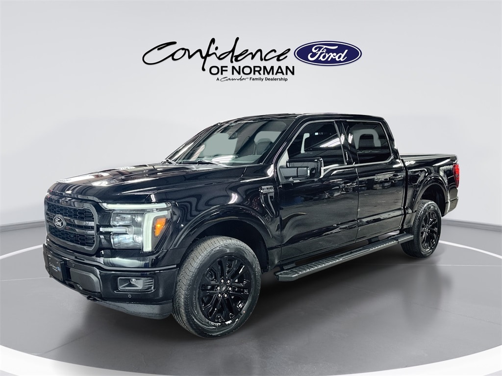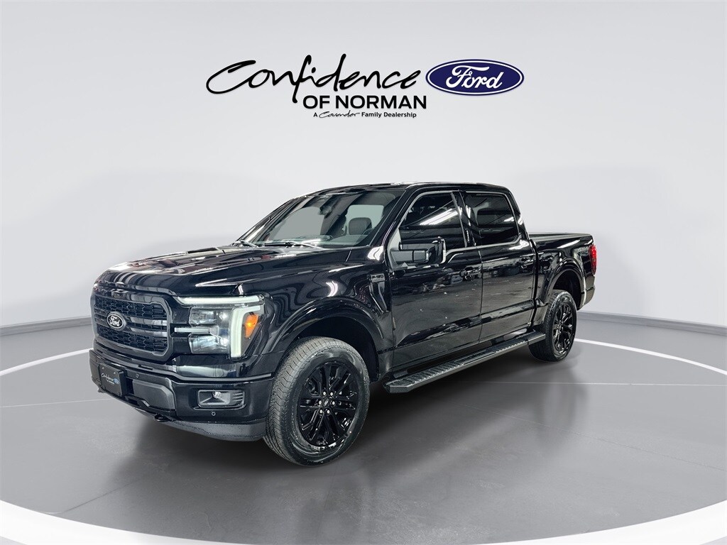 Features: Equipment Group 502A High (2nd Row Heated Seats, ActiveX Trimmed Bucket Seats, Ambient Lighting - Ice Blue Color Only, Head-Up Display, Illuminated Driver and Passenger Visors, Power-Adjustable Pedals with Memory, Power-Sliding Rear Window, Radio: B&O Unleashed Sound System by Bang & Olufsen, and Wheels: 20" Chrome-Like PVD), Ford Connectivity Package (1-Year Included), Internet access capable: 5G Modem - Ford Connectivity Package, Lariat Black Appearance Package (Black Exterior Badging, Black Grille, Black Taillamp Bezels, Body-Color Front and Rear Bumpers, Dark Interior Appliques, Gray Box Side Decal, and Matte Black Tailgate F-150 Decal), Mobile Office Package (Console Worksurface, Partitioned Lockable Rear Storage, and Wireless Charging), Tow/Haul Package (Integrated Trailer Brake Controller), 4WD, 4-Wheel Disc Brakes, 8 Speakers, ABS brakes, Air Conditioning, Alloy wheels, AM/FM radio: SiriusXM with 360L, Auto High-beam Headlights, Auto-dimming door mirrors, Auto-dimming Rear-View mirror, Automatic temperature control, Brake assist, Bumpers: chrome, Chrome wheels, Compass, Delay-off headlights, Driver door bin, Driver vanity mirror, Driver's Side SecuriCode Keyless-Entry Keypad, Dual front impact airbags, Dual front side impact airbags, Electronic Stability Control, Emergency communication system: SYNC 4 911 Assist, Front anti-roll bar, Front Bucket Seats, Front Center Armrest, Front dual zone A/C, Front fog lights, Front License Plate Bracket, Front reading lights, Front wheel independent suspension, Fully automatic headlights, Garage door transmitter, Heated door mirrors, Heated front seats, Heated steering wheel, Illuminated entry, Low tire pressure warning, Memory seat, Navigation system: Connected Navigation, Occupant sensing airbag, Outside temperature display, Overhead airbag, Overhead console, Panic alarm, Passenger door bin, Passenger vanity mirror, Power door mirrors, Power driver seat, Power passenger seat, Power steering, Power windows, Radio data system, Radio: B&O Sound System by Bang and Olufsen, Rain sensing wipers, Rear reading lights, Rear seat center armrest, Rear step bumper, Rear window defroster, Remote keyless entry, Security system, Speed control, Split folding rear seat, Steering wheel mounted audio controls, SYNC 4 with Enhanced Voice Recognition, Tachometer, Telescoping steering wheel, Tilt steering wheel, Traction control, Trip computer, Turn signal indicator mirrors, Variably intermittent wipers, Ventilated front seats, and Wheels: 18" Chrome-Like PVD. Price includes: $1000 - Retail Bonus Cash. Exp. 03/31/2026 $2000 - Retail Customer Cash. Exp. 03/31/2026