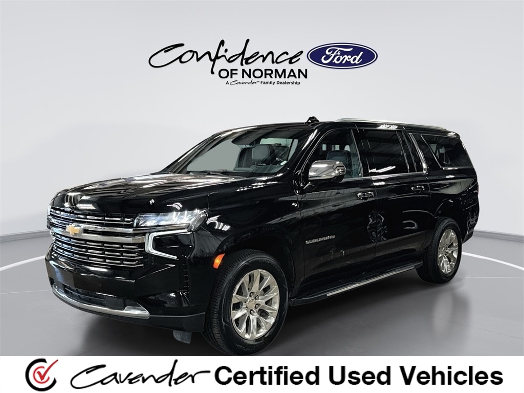 Cavender Certified Pre-Owned Program Built-in Benefits: Limited Powertrain Warranty for your peace of mind. Coverage includes components for engine, transmission and axles (for specific component coverage, please speak with a dealer representative). 24/7 Roadside Assistance â" No out-of-pocket costs for customers towed to our dealership (if located within 30 miles), lockout assistance, jump start, fuel and fluid delivery, flat tire changes, available 365 days/year, up to $100 maximum coverage per roadside incident. A Vehicle History Report is included with every Cavender Certified Pre-Owned vehicle to offer you Confidence knowing that the vehicle you are purchasing is right for you and the road ahead. (Limitation and exclusions apply. Please refer to your Limited Warranty Registration for full coverage information.) The Cavender Auto Family, proudly serving our communities since 1939, and we look forward to serving you! - Equipment: Preferred Equipment Group 1LZ (12-Way Power Driver & Passenger Seat Adjusters, 1st & 2nd Row Color-Keyed Carpeted Floor Mats, 2-Speed Active Electronic AutoTrac Transfer Case, 3rd Row 60/40 Power-Folding Split-Bench, Auto-Dimming Inside Rear-View Mirror, Bose 10-Speaker Surround w/CenterPoint, Bright Front & Rear Door Sill Plates, Chrome Door Handles w/Body-Color Strip, Chrome Mirror Caps, Color-Keyed Carpeting Floor Covering, Driver & Front Outboard Passenger Airbags, Dual Exhaust System, Enhanced Driver Information Center, Floor Console, Hands-Free Rear Power Programmable Liftgate, Heated 2nd Row Outboard Seats, Heated Driver & Front Passenger Seats, Heated Steering Wheel, Hill Descent Control, Infotainment Display, Lane Change Alert w/Side Blind Zone Alert, LED Daytime Running Lamps, Memory Settings, Outside Heated Power-Adjustable Mirrors, Perforated Heated & Ventilated Seats, Power Release 2nd Row Bucket Seats, Power Tilt & Telescopic Steering Column, Rear Cross Traffic Alert, Remote Start, Safety Alert Seat, SiriusXM w/360L, Universal Home Remote, Wireless Charging, and Wrapped Steering Wheel), 10 Speakers, 20" x 9" Polished Aluminum Wheels, 2nd Row Pwr Release 60/40 Split-Folding Bench Seat, 3.23 Rear Axle Ratio, 3rd row seats: split-bench, 4-Wheel Disc Brakes, ABS brakes, Adaptive suspension, Air Conditioning, Alloy wheels, AM/FM radio: SiriusXM with 360L, Apple CarPlay/Android Auto, Auto High-beam Headlights, Auto-dimming door mirrors, Auto-dimming Rear-View mirror, Auto-leveling suspension, Automatic temperature control, Brake assist, Bumpers: body-color, Compass, Delay-off headlights, Deleted 3 Years of Remote Access, Driver door bin, Driver vanity mirror, Dual front impact airbags, Dual front side impact airbags, Electronic Stability Control, Emergency communication system: OnStar and Chevrolet connected services capable, Floor Console w/Storage Area, Four wheel independent suspension, Front anti-roll bar, Front Bucket Seats, Front Center Armrest, Front dual zone A/C, Front reading lights, Fully automatic headlights, Garage door transmitter, Heated door mirrors, Heated front seats, Heated rear seats, Heated steering wheel, Illuminated entry, Low tire pressure warning, Magnetic Ride Control Suspension, Memory seat, Navigation System, Occupant sensing airbag, Outside temperature display, Overhead airbag, Overhead console, Panic alarm, Passenger door bin, Passenger vanity mirror, Perforated Leather Seating Surfaces, Power door mirrors, Power driver seat, Power Liftgate, Power passenger seat,