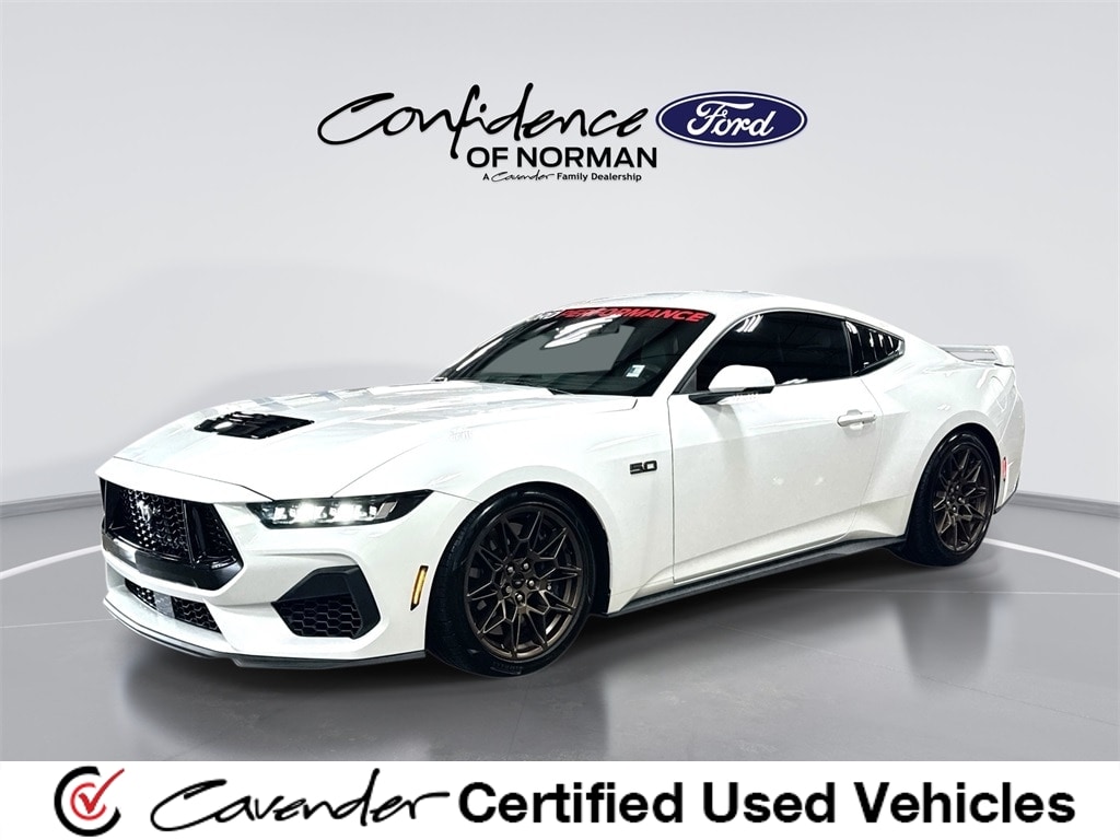 Cavender Certified Pre-Owned Program Built-in Benefits: Limited Powertrain Warranty for your peace of mind. Coverage includes components for engine, transmission and axles (for specific component coverage, please speak with a dealer representative). 24/7 Roadside Assistance â" No out-of-pocket costs for customers towed to our dealership (if located within 30 miles), lockout assistance, jump start, fuel and fluid delivery, flat tire changes, available 365 days/year, up to $100 maximum coverage per roadside incident. A Vehicle History Report is included with every Cavender Certified Pre-Owned vehicle to offer you Confidence knowing that the vehicle you are purchasing is right for you and the road ahead. (Limitation and exclusions apply. Please refer to your Limited Warranty Registration for full coverage information.) The Cavender Auto Family, proudly serving our communities since 1939, and we look forward to serving you! - Equipment: Bronze Appearance Package, Equipment Group 401A High Package (Illuminated Door-Sill Scuff Plates and Leather-Trimmed Bucket Seats w/Color Accents), GT Performance Package (Ebony Black Grille), 4-Wheel Disc Brakes, ABS brakes, Air Conditioning, Alloy wheels, AM/FM Stereo, Auto High-beam Headlights, Automatic temperature control, Brake assist, Bumpers: body-color, Compass, Delay-off headlights, Driver door bin, Driver vanity mirror, Dual front impact airbags, Dual front side impact airbags, Electronic Stability Control, Emergency communication system: 911 Assist, Exterior Parking Camera Rear, Four wheel independent suspension, Front anti-roll bar, Front Bucket Seats, Front Center Armrest, Front dual zone A/C, Front reading lights, Fully automatic headlights, Illuminated entry, Internet access capable: FordPass Connect, Knee airbag, Leather Shift Knob, Leather steering wheel, Low tire pressure warning, Occupant sensing airbag, Outside temperature display, Overhead airbag, Overhead console, Panic alarm, Passenger door bin, Passenger vanity mirror, Power door mirrors, Power steering, Power windows, Radio data system, Rain sensing wipers, Rear anti-roll bar, Rear Parking Sensors, Rear window defroster, Remote keyless entry, Speed control, Speed-sensing steering, Speed-Sensitive Wipers, Split folding rear seat, Spoiler, Sport steering wheel, Steering wheel mounted audio controls, SYNC 4, Tachometer, Telescoping steering wheel, Tilt steering wheel, Traction control, Trip computer, Variably intermittent wipers, Voltmeter, and Wheels: 19" x 8.5" Sinister Bronze Painted Alum.