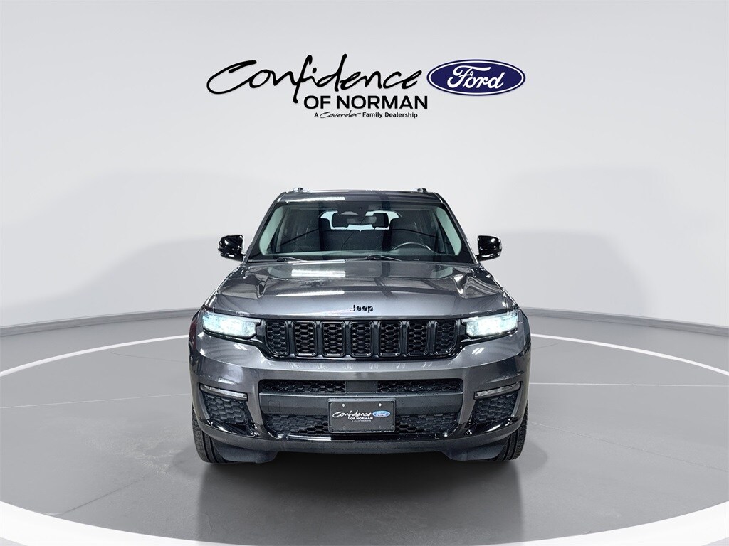 Features: Black Appearance Package (Gloss Black Exterior Accents, Molded In Color Black/Gloss Black Roof Rails, and Wheels: 20" x 8.5" Gloss Black Painted Aluminum), Quick Order Package 22E, Dual-Pane Panoramic Sunroof, Interior Rear Facing Camera, 10.1" Touchscreen Display, 3.45 Rear Axle Ratio, 3rd row seats: split-bench, 4-Wheel Disc Brakes, 4G LTE Wi-Fi Hot Spot, 506 Watt Amplifier, 6 Speakers, 9 Amplified Speakers w/Subwoofer, ABS brakes, Active Noise Control System, Air Conditioning, All Radio Equipped Vehicles, Alloy wheels, AM/FM radio: SiriusXM with 360L, Anti-whiplash front head restraints, Apple CarPlay, Audio memory, Auto High-beam Headlights, Automatic temperature control, Brake assist, Bumpers: body-color, Capri Leather Seats, Compass, Connected Travel & Traffic Services, Connectivity - US/Canada, Delay-off headlights, Disassociated Touchscreen Display, Driver door bin, Driver vanity mirror, Dual front impact airbags, Dual front side impact airbags, Electronic Stability Control, Emergency communication system, For Details, Visit DriveUconnect.com, For More Info, Call 800-643-2112, Four wheel independent suspension, Front anti-roll bar, Front Bucket Seats, Front Center Armrest w/Storage, Front dual zone A/C, Front fog lights, Front reading lights, Fully automatic headlights, Garage door transmitter, Global Telematics Box Module (TBM), Google Android Auto, GPS Antenna Input, GPS Navigation, HD Radio, Heated door mirrors, Heated front seats, Heated rear seats, Heated steering wheel, Illuminated entry, Integrated Center Stack Radio, Integrated Voice Command w/Bluetooth, Knee airbag, Leather steering wheel, Low tire pressure warning, Manual Fold Seatbacks, Memory seat, Normal Duty Suspension, Occupant sensing airbag, Outside temperature display, Overhead airbag, Overhead console, Panic alarm, ParkView Rear Back-Up Camera, Passenger door bin, Passenger vanity mirror, Power door mirrors, Power driver seat, Power Liftgate, Power passenger seat, Power steering, Power windows, Radio data system, Radio: Uconnect 5 Nav w/10.1" Display, Radio: Uconnect 5 w/8.4" Display, Rear air conditioning, Rear anti-roll bar, Rear reading lights, Rear window defroster, Rear window wiper, Reclining 3rd row seat, Remote keyless entry, Security system, SiriusXM Radio Service, SiriusXM Satellite Radio, SiriusXM w/360L, Speed control, Speed-Sensitive Wipers, Split folding rear seat, Spoiler, Steering wheel mounted audio controls, Tachometer, Telescoping steering wheel, Tilt steering wheel, Traction control, Trip computer, Turn signal indicator mirrors, USB Host Flip, Variably intermittent wipers, Voltmeter, and Wheels: 18" x 8.0" Fully Painted Aluminum 2.